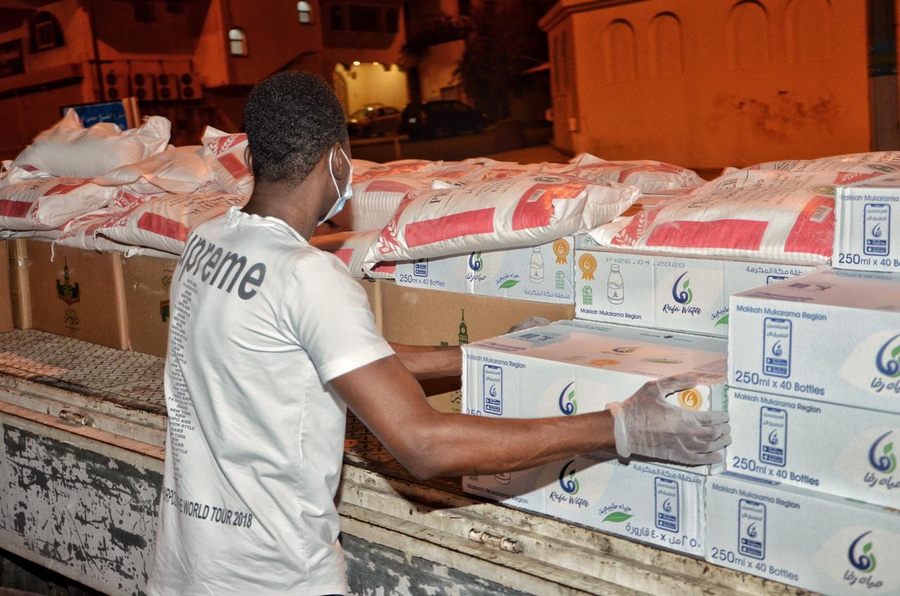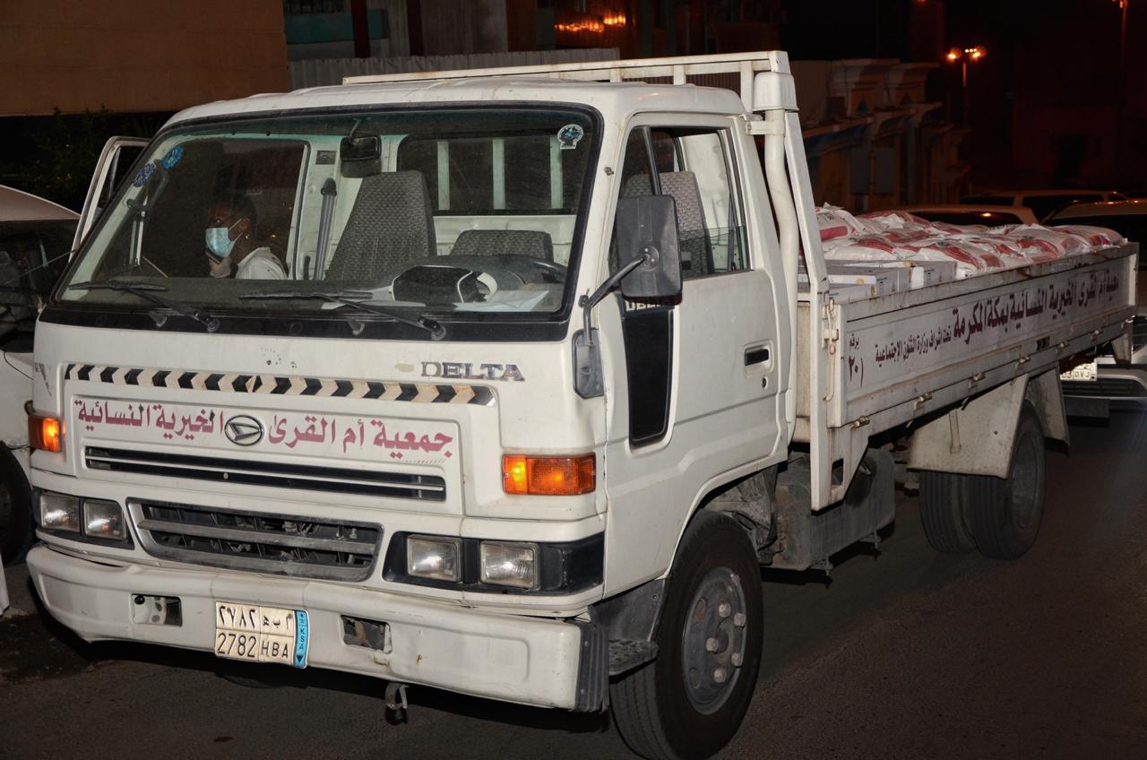فريق سواعد أم القرى يشارك في توزيع السلال على مستفيدي مركز الخدمة المجتمعية